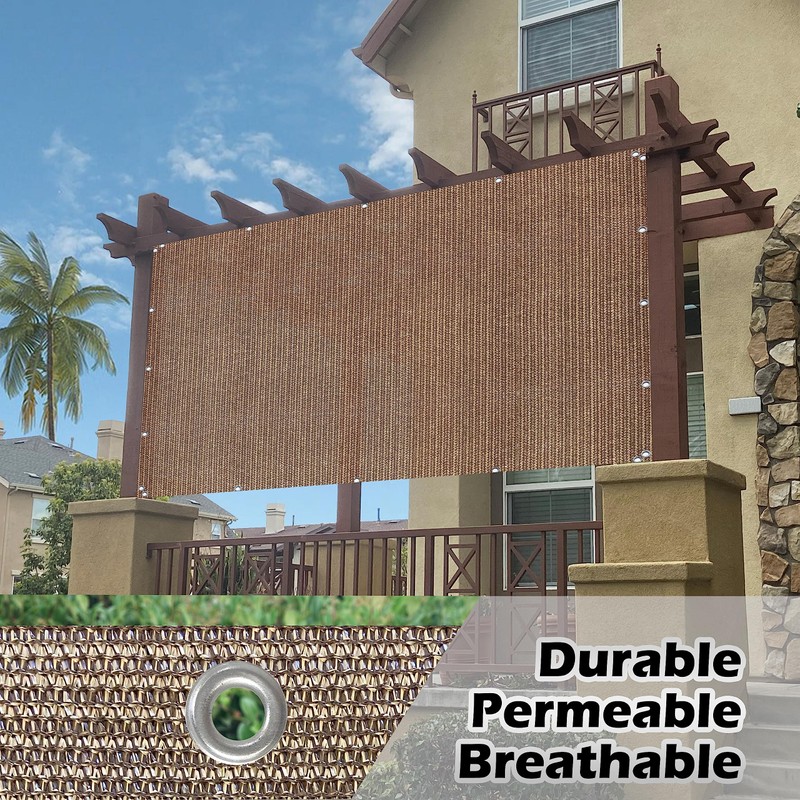 Alion Home Sun Shade Panel Privacy Screen with Grommets on 4 Sides for Outdoor, Patio, Awning, Window Cover, Pergola (8' x 7', Walnut)