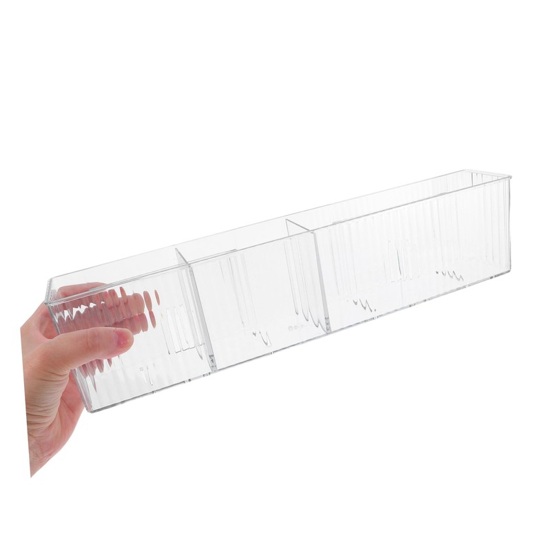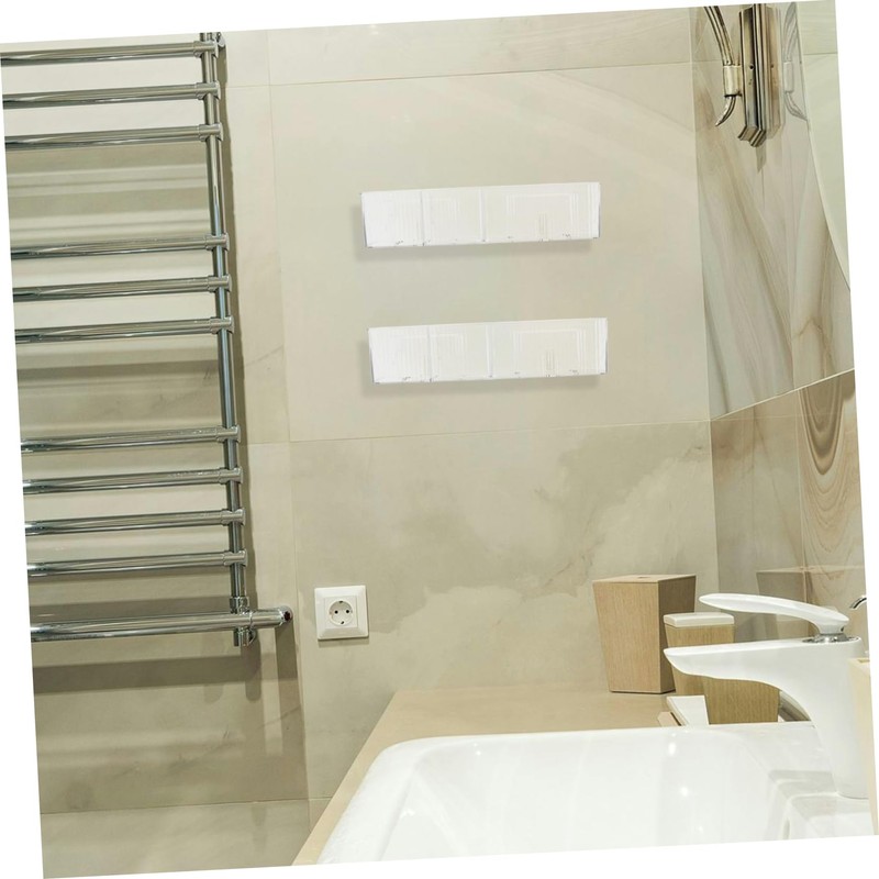 clear storage organizer Its sturdy acrylic construction is both stylish and functional, offering a clear view of your stored items.acrylic bathroom storage organizer The divided sections help keep your toiletries and makeup neatly organized and easily accessible.bathroom storage with 3 compartments The wall-mounted design of this bathroom organizer saves valuable counter space, making it suitable for smaller bathrooms