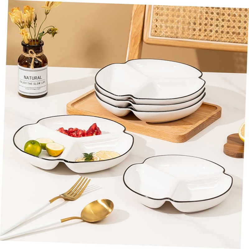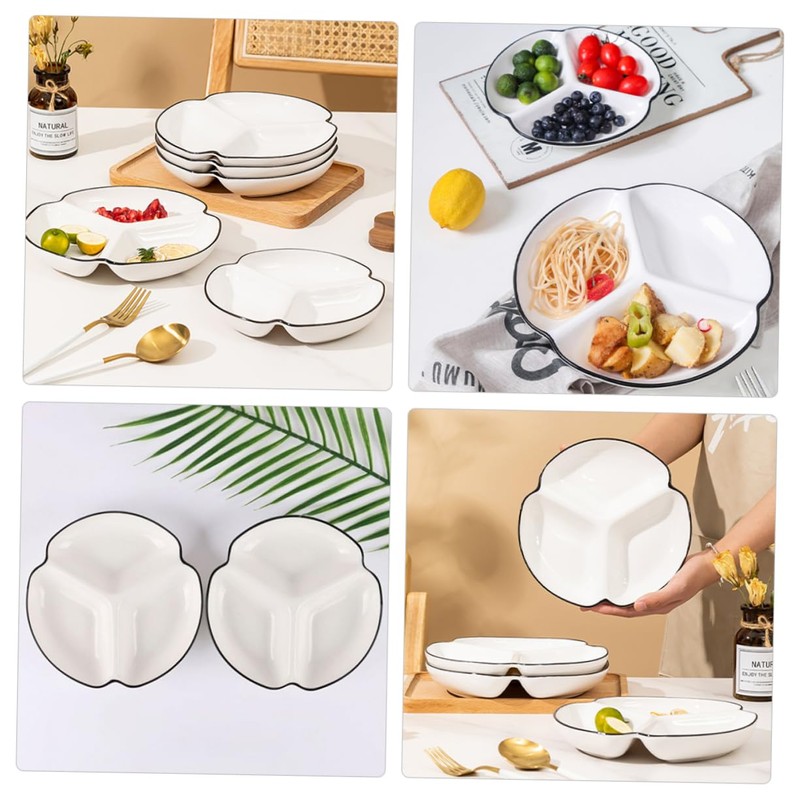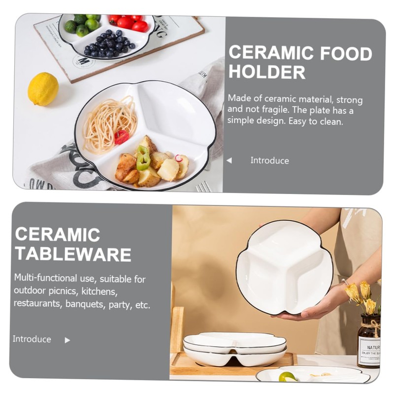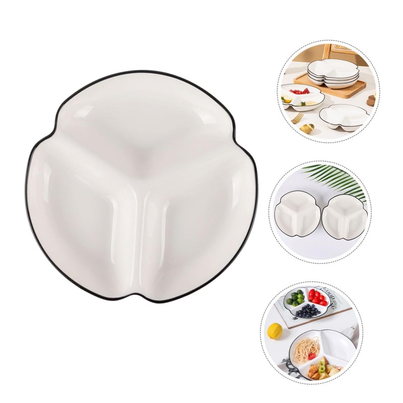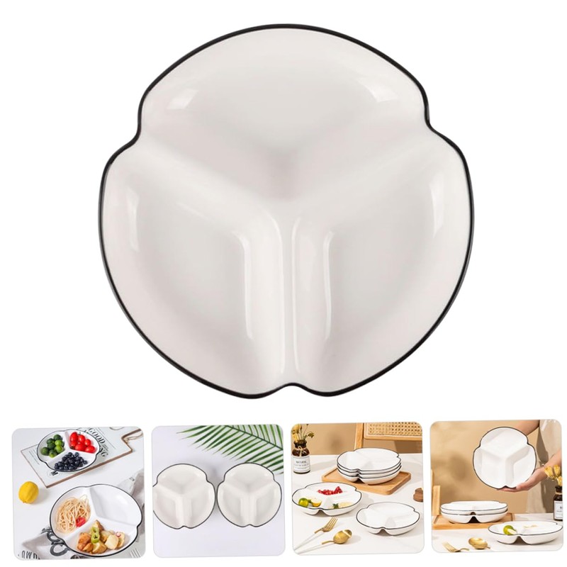 Alipis 3-Grid Ceramic Dinner Plate Adult Size Divided Plate Separator Plates for Salad Dessert and Main Dishes