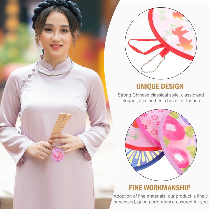 - This round folding hand fan doesnt make any noise and provides you with a comfortable experience. Exquisite outlook and special Children make it also an adornment for home, and living room