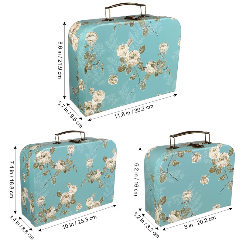 Alipis Paperboard Suitcase s Storage Box with Metal Handles, 3Pcs Floral Print Cardboard Suitcase Stackable Storage Chests Boxes Decorative Luggage