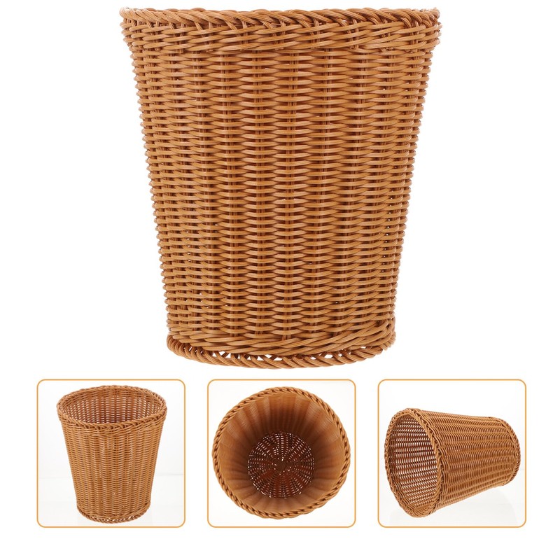 - 【Wicker Waste Basket】🗑️🔥🔥 Rattan waste basket wicker trash can round trash bin woven storage basket clothes container imitation rattan woven storage bucket sundries basket for bedroom, living room and bathroom basket.
