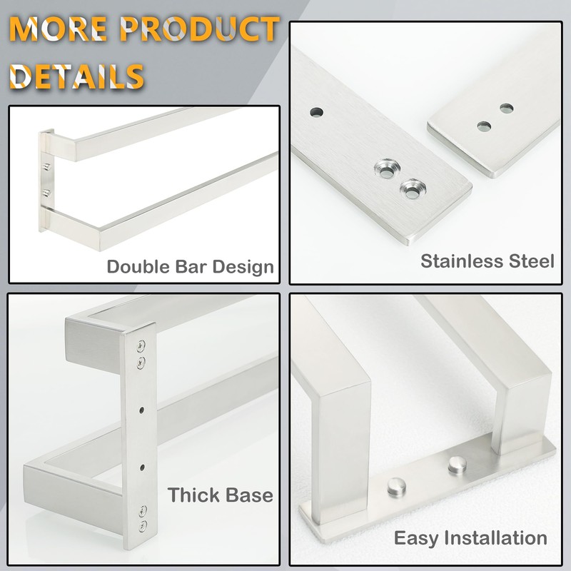 - 【Hand-Brushed Finish】 Each double towel bar receives a meticulous hand-brushed finish, showcasing a sleek, pristine appearance that stands up to daily scratches and corrosion.