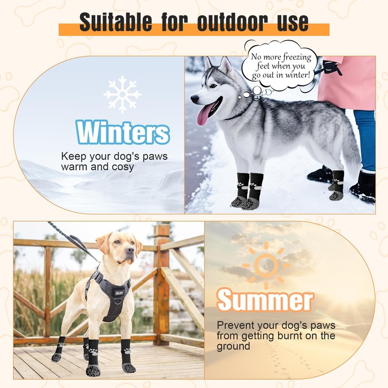 - PERFECT PAW PROTECTOR: Socks are suitable for dogs of all ages, not only anti-slip, but also can prevent your dog from licking, in outdoor activities , to avoid summer burns and winter cold or scratches by sharp objects.