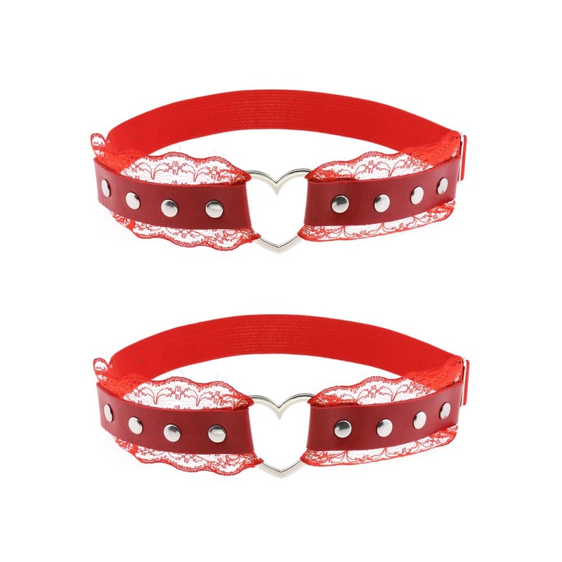 - [Premium Material] These red leg garters were made of faux leather, lace, alloy and elastic belt. Improved sewing making process, makes the garters more durable and comfortable.