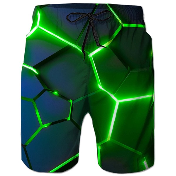 ALISISTER Men's Swimming Trunks Summer Swimming Shorts 3D Print Quick Drying Hawaii Surf Swimming Trunks Sports Shorts, C-geometry, l