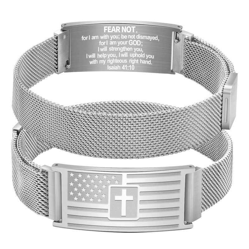 - 【Exquisite Design】: The mens religious bracelets artfully combines Christian faith and patriotism. Its front shows a flag - cross and the back has scriptures, stainless steel bracelets for men revealing the wearer's dual devotion