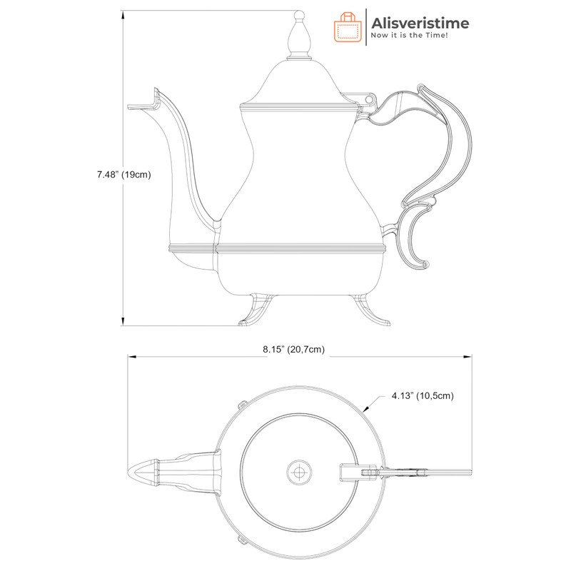 Alisveristime Decorative Zamac Pitcher - Elegant Ornamental Teapot for Home Decor (Gold & Silver) (Silver, Medium)