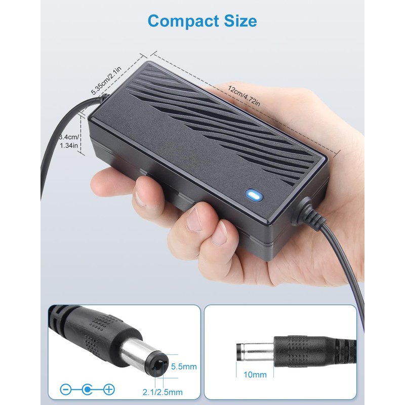 - Input: 100V-240V 50/60Hz; Output: DC 12V 5A max; Output adaptor jack size: 5.5mm x 2.5mm,compatible with 5.5mm x 2.1mm. Connector polarity is internal positive "+", outside negative"-".