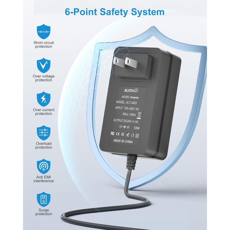 - Widely used: This 24V 3A power adapter fits for LED Strip Lights, Router, Electronic Piano Keyboard, DVR NVR Surveillance System, Security CCTV Camera, Portable Radio, Digital Photo Frame, External Hard Drive, Foot Back Neck Shoulder Massager, Video Baby Monitor, Mini Fan and more 24V devices.