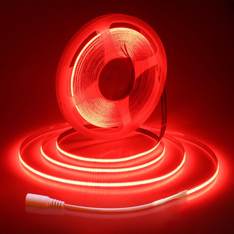• Flexible COB LED strip: Compared to conventional 5050SMD 3528SMD light strips, our red COB light strip uses more ultra-bright, denser LED chips, 320LEDs/M, total 10 m 3200 LEDs. It can provide a brighter, softer and more uniform light than SMD light strips, you don't have to worry about dark spots and avoid black in the middle area.
