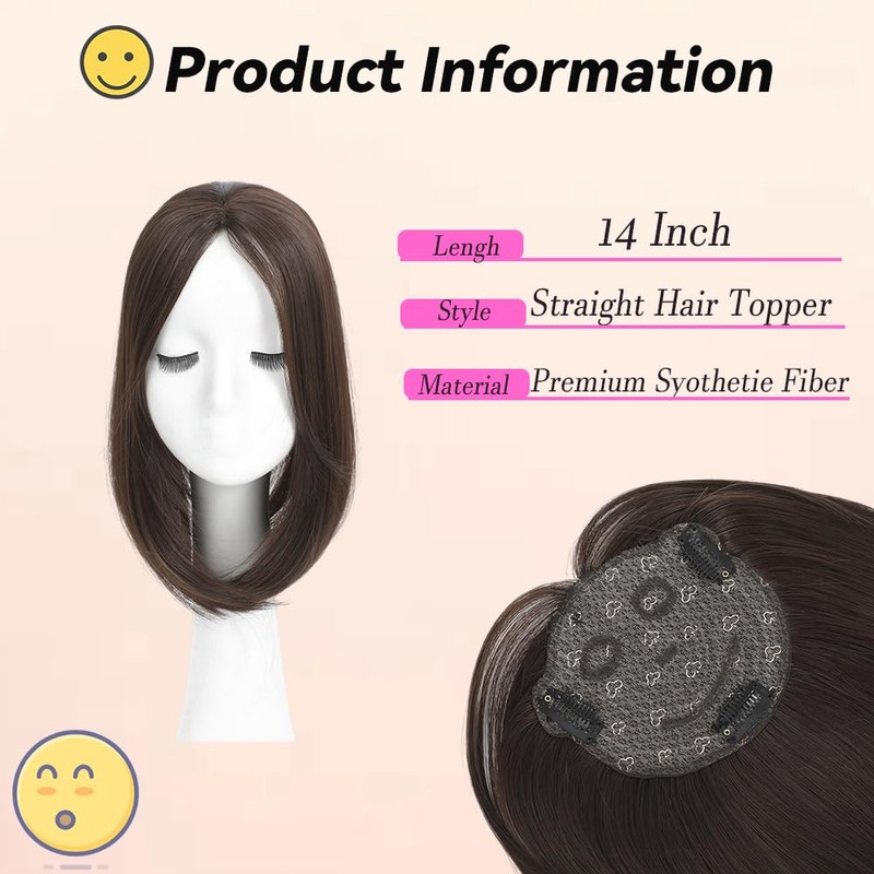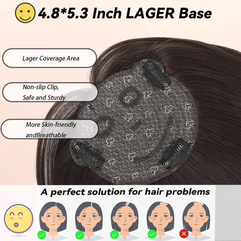 - 【Product Features and Advantages】Hair toppers is the perfect option and solution to add hair volume and thickness,cover gray hair,change hair style,offering a natural and voluminous look instantly,improve your glamour.When you see the smiling face on the hair topper,put it on! You'll feel delighted all day long.