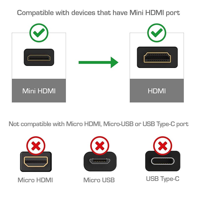 - High-speed Mini HDMI to HDMI cable, HDMI A to C Type cable. Please note, this is not for Micro USB connectors. Your device must have MINI HMDI connector.