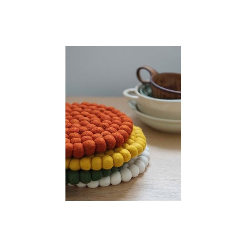 - Functional Design: The thick and durable wool construction provides excellent heat resistance, protecting your surfaces from hot mugs or glasses.