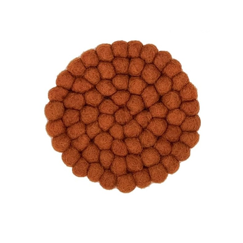 Alive Round Felt Ball Coasters, Wool Table Coasters, Felt Coaster Pads, Absorbent Trivet for Drinks, Heat Resistant, Thick & Durable, Hand Felted in Nepal (Orange, Large - Pan/Plate Holder)