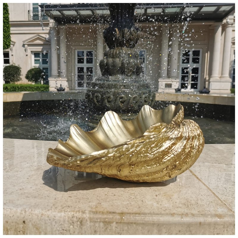 - Great for any bathroom countertop or living room side table, this plaster bowl is inspired by an opening clam, with antique gold colour to bring an elegant feel to your living room, dinning table, home or office.