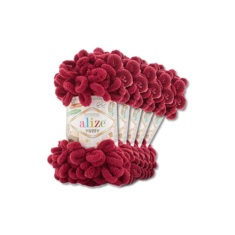 Alize Puffy Wool Chenille Loop Wool, 5 x 100 g, Crochet and Knit without Tools, Clothing, Accessories, Blankets, Rugs (107 | Bordeaux)