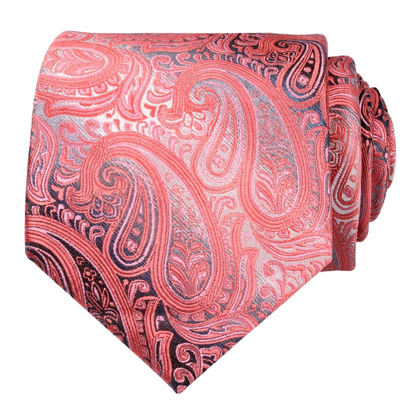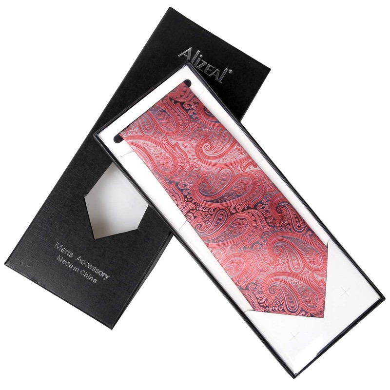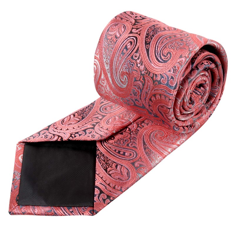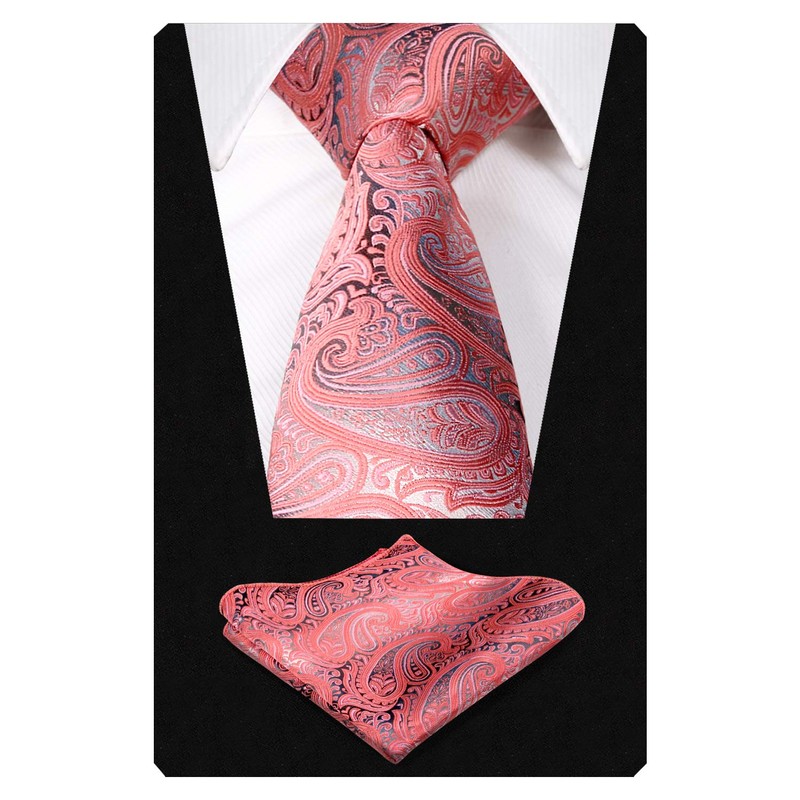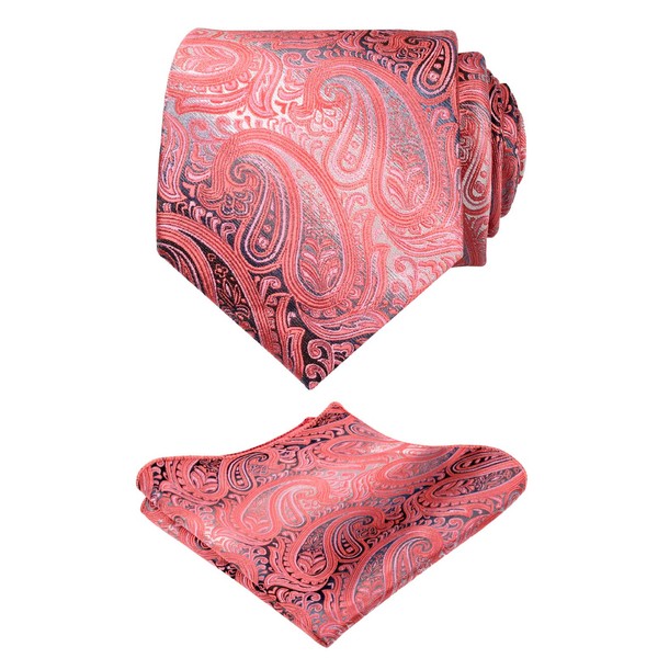 Alizeal Gradient Paisley Floral Tie with Pocket Square Set-Coral