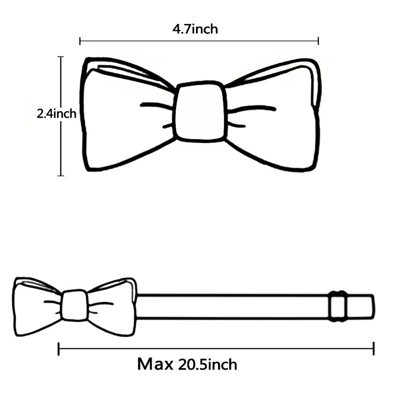 - SIZE: Bow tie Width: 2.36" (6cm) and Length: 4.72"(12cm); Suspenders Width: 1" (2.5cm) and Length: 43.3"/110cm (include the length of the clips)