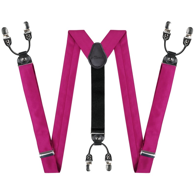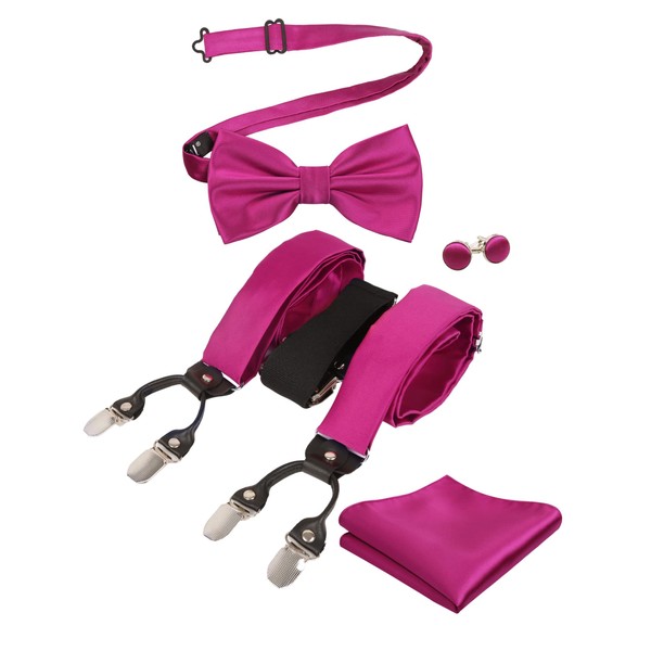 Alizeal Men's Plain 6 Clips Bow Tie and Suspenders, Pocket Square, Cufflinks Set-Black, 072 - Magenta, Unit size