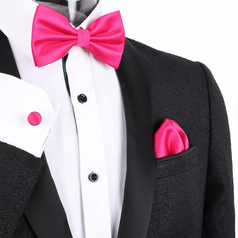 Alizeal Mens Tuxedo Bow Tie, Hanky and Cufflinks Set, Hot Pink