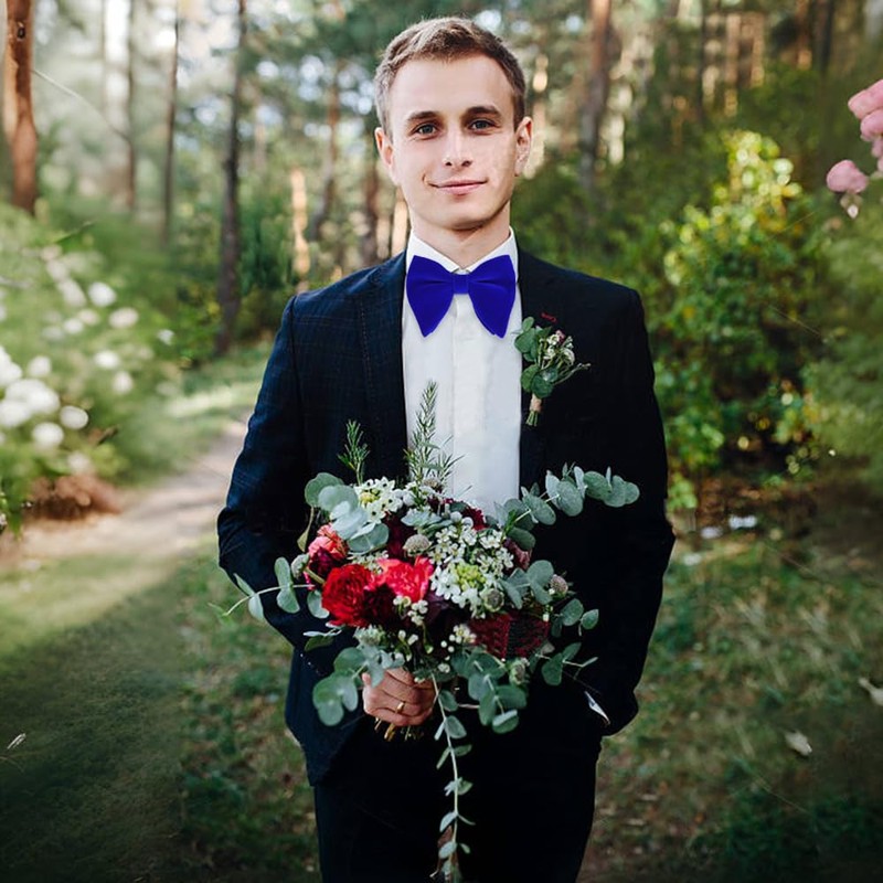 - Diseño: correa ajustable para el cuello, cierre de gancho y corbata, estilo clásico y diseño de moda que pueden complementar cualquier camisa de esmoquin El terciopelo brillante hace que se vea elegante