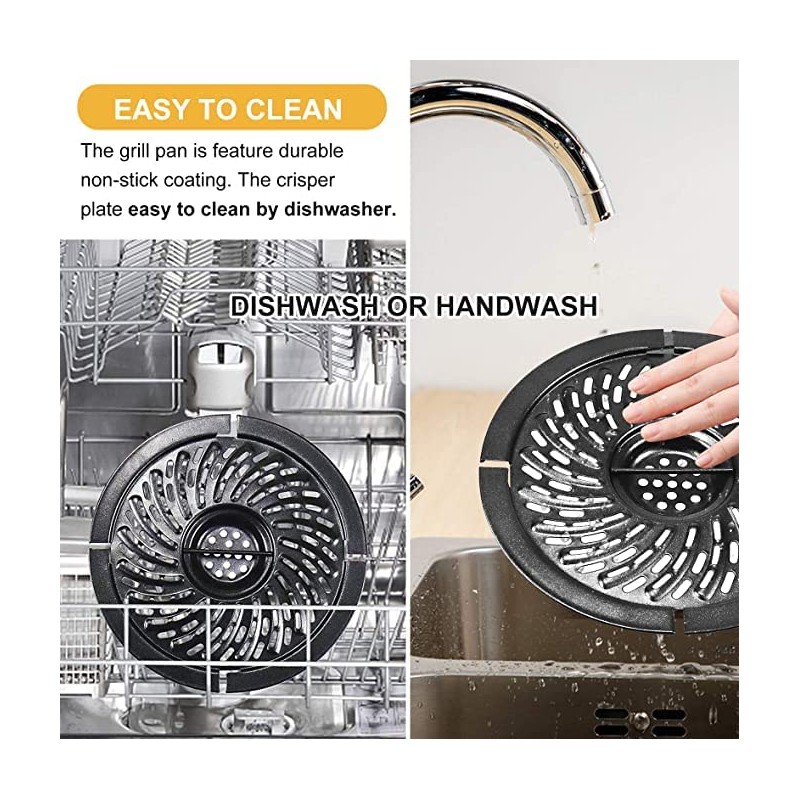 - What You Can Get: 1×Air fryer replacement grill plate, gifts: 1×Kitchen non-stick cleaning cloth, 4×Air fryer rubber bumper.