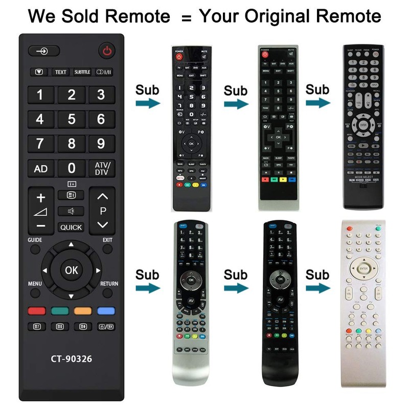 - ★ Alkia universal remote control CT-90326 compatible replacement for Toshiba TV/ LCD/ LED.