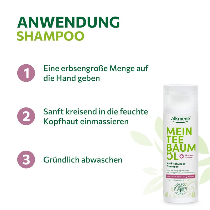 - Box contents: 3 x 200 ml alkmene anti-dandruff shampoo with tea tree oil and piroctone olamine - less dandruff in just 2 weeks