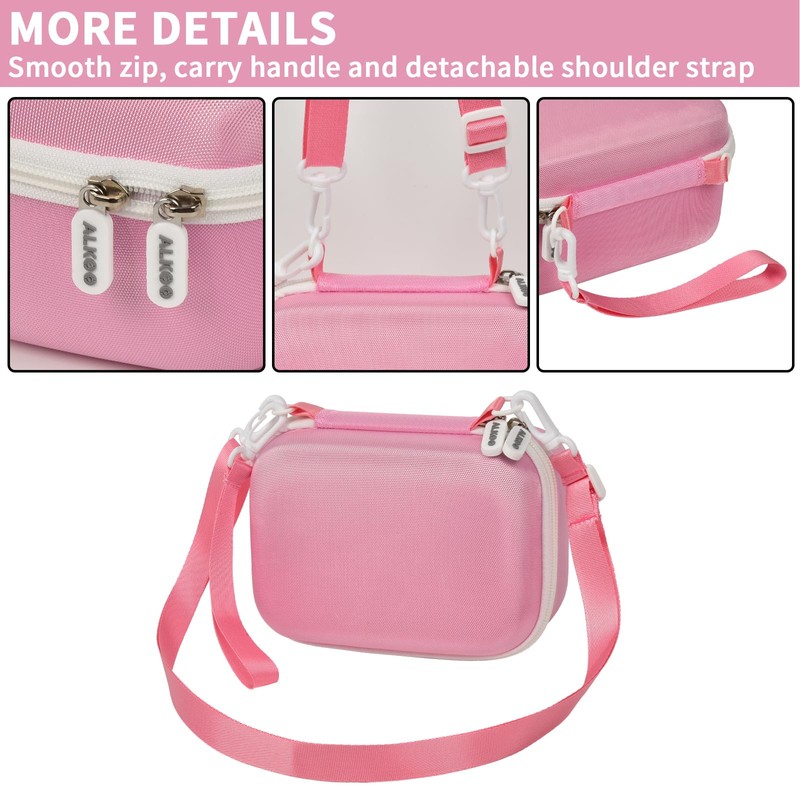ALKOO Case Compatible with Dylanto/for Anchioo/for ESOXOFFORE Kids Camera Instant Print, 1080P Digital Video Cameras Holder – Dual-Zip Portable Storage for SD Card, Photo Paper, Lanyard & Cable(Pink)