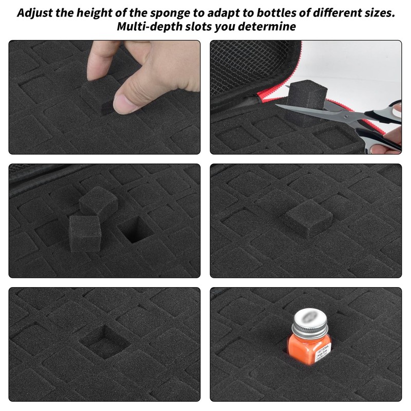 - Paint Storage Bag with Foam and Sponge Design - well constructed and ideal for carrying paints and a few brushes from place to place. Well-padded and perfectly sized for Testors paints. The paint bottles will be stored tightly inside the multi-depth slot and provides a well protection for your beloved paints and brushes.