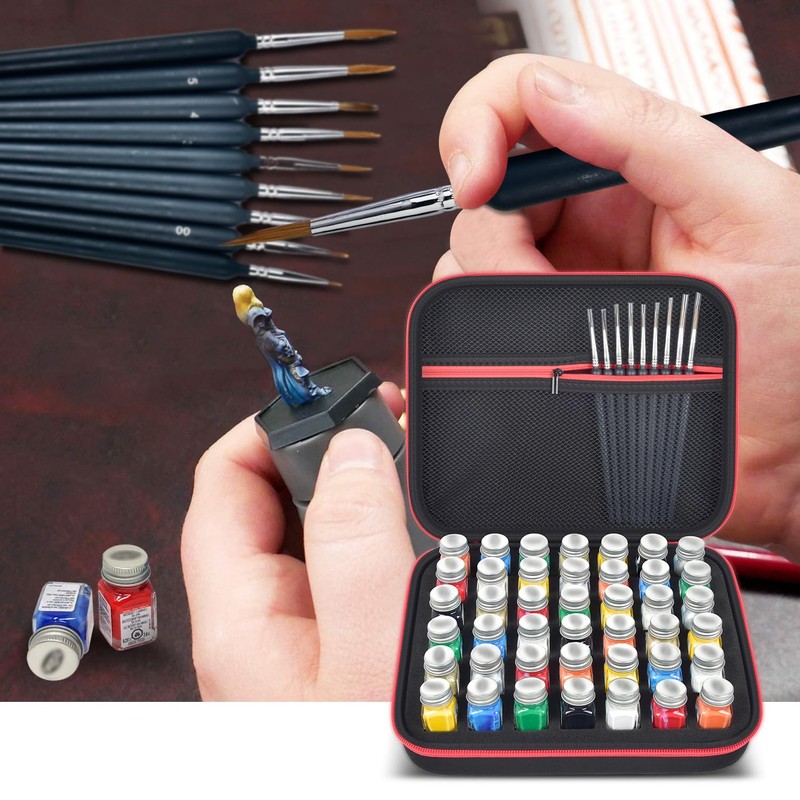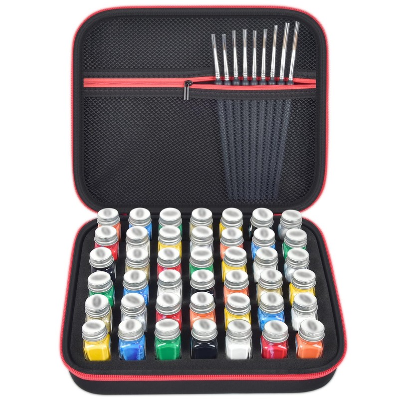 - Model Paint Holder with Waterproof Material - The craft paint storage keeps your painting accessories in order and store dry. Superior Protection: Pack to anyaway, without having to worry about bumps and scratches. store all of your model paints and brushes in this, Great for organization!