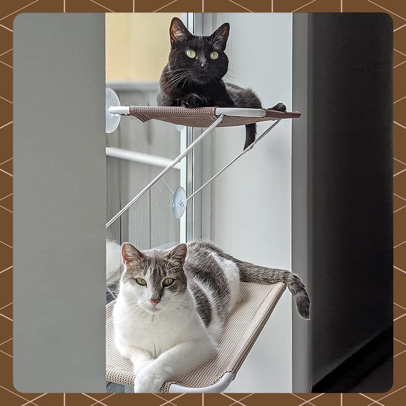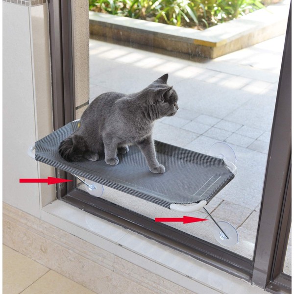 Cats Love the sunbath It is well known that cats are always looking for a place with a nice view to enjoy the sunshine. The cat window perch can provides a safe 360° Sunbath for cats. Cats Love the Climbing The cat window perch not only creates a relatively safe climbing environment for your cat, but also a way to improve its balance, flexibility and muscle growth. Why not give your LOVELY CAT a Special Gift? Let the Cat Feel Your Love, Give your cats the best seat in the house! Keep cats warm and happy. LsaiFater Cat Window Perch has the following advantages: EASY TO ASSEMBLE Easy to follow the instruction guide assemble quick and effortless without any tools. SAFE AND RELIABLE The big suction cup for this cat window perch can hold up to 50lbs, and this cat window perch is made of iron and steel and is strong and strong. MACHINE WASHABLE Removable Rugged Fabric Mat, waterproof, quick-drying and easy to clean. AFTER SALES SERVICE IN PLACE If the product is considered as defective, contact us for free replacement or lightning refund. ‼️ IMPORTANT NOTE 1\. To avoid suction cups falling, please make sure the suction cups and window are clean. 2\. The suction cups need to be installed on smooth surface. Please note that rough surfaces are not suitable for installation. 3\. Put the suction cups into warm water(50℃-70℃) for 2-4 minutes and use it after drying. It is simple and helpful to make the suction cups stronger. 4\. Please pay attention to the step 9 of installation, the hook head of metal support arm is horizontal to the pipe wall, not vertical, and then hook into the hole. Installation size: Hammock area: 23.62" x 11.81" (L x W) Distance between section cups of hammock: 17.32" Support height: 13" Distance between section cups of lower support: 20"~25"