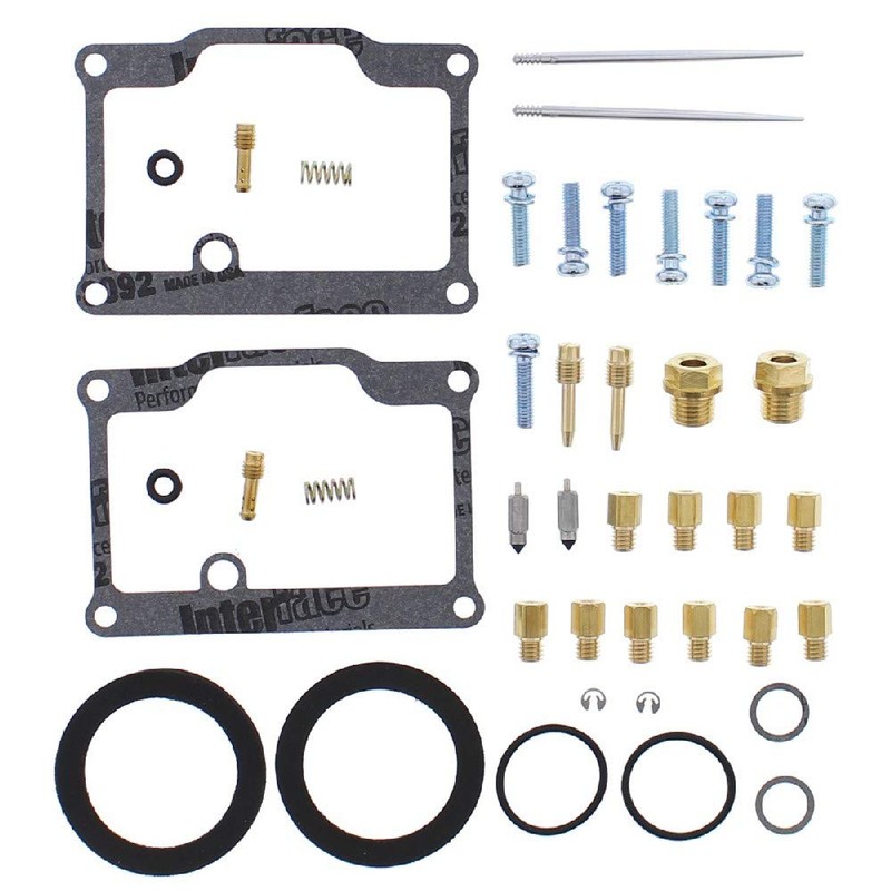 - Kit includes necessary all O-rings, gaskets, jets, needle, mixture screw, float bowl screws, float valve needle and seat. (Needle jet and other pressed in jets are not included in kit.)