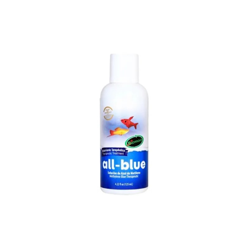 All-blue es una formulación tradicional utilizada para la prevención de enfermedades infecciosas causadas por hongos y parasitarias comunes que afectan a los peces de acuario.