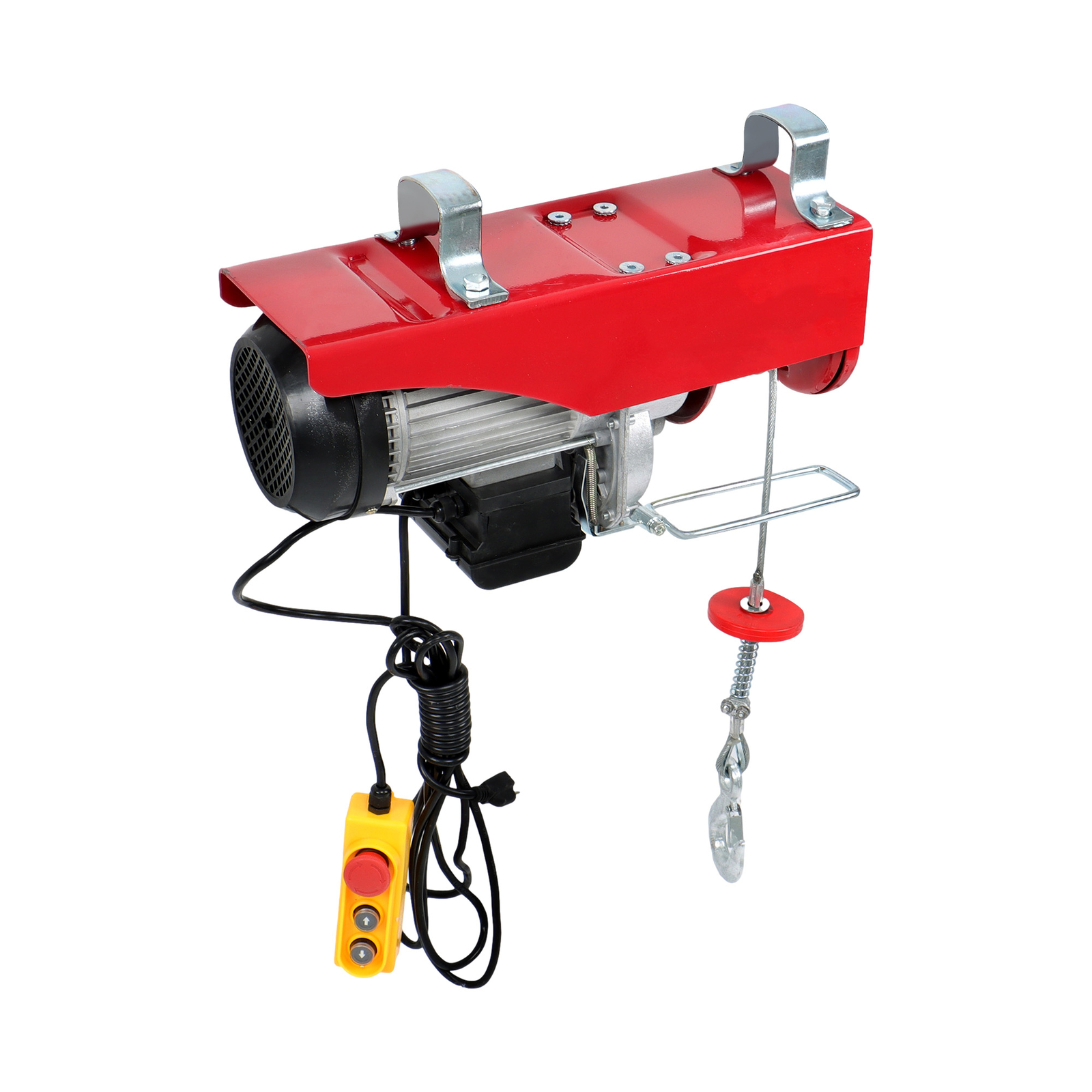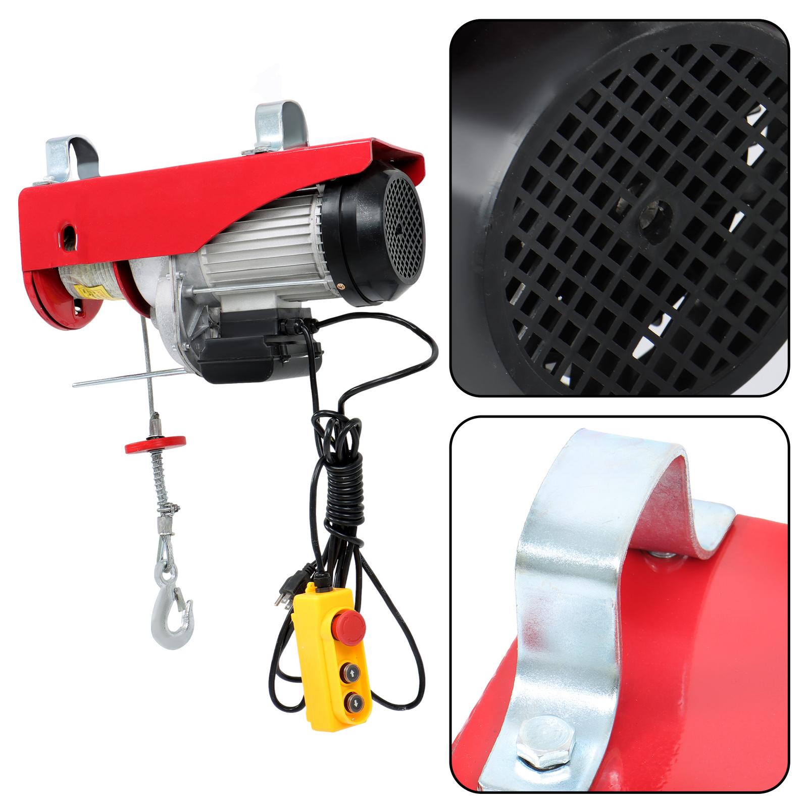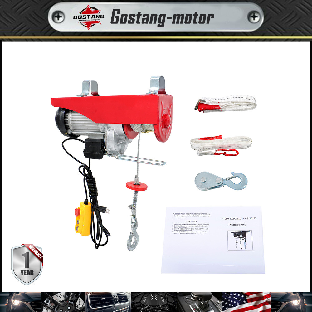 Package List: 1 x Electric Hoist 1 x Wired Remote Control 1 x13 ft Lift Sling Strap 1 x 3.2 ft Lift Sling Strap 1 x Double Rope Hook