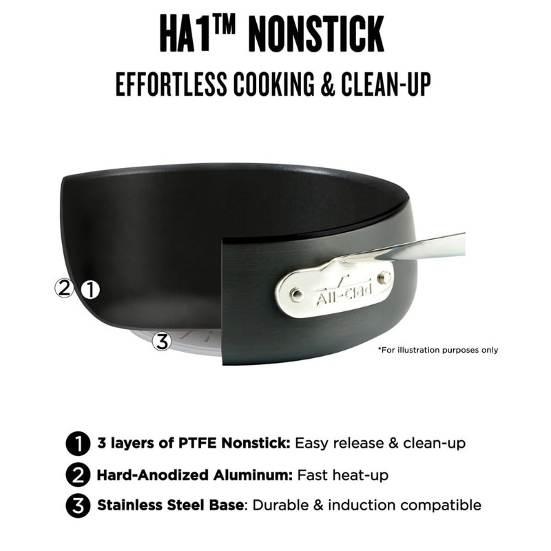 - HIGH QUALITY PERFORMANCE WITH EVERYDAY CONVENIENCE, HA1 Nonstick heavy gauge aluminum and stainless-steel base deliver consistent, delicious cooking. The high-quality nonstick brings a long-lasting and easy release to cook with less fat.
