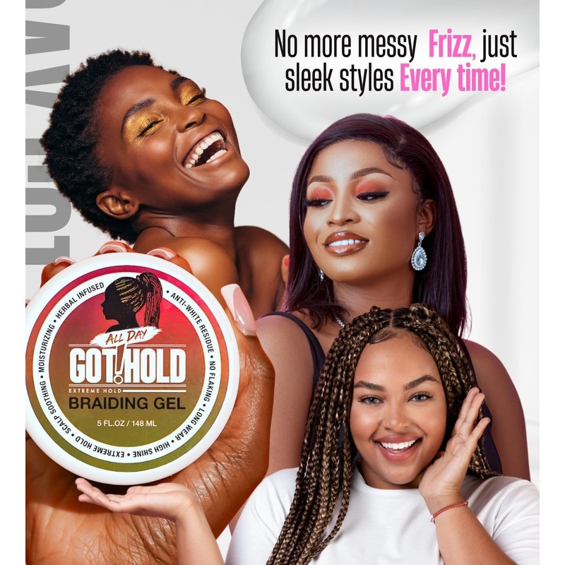 ALL DAY GOT HOLD Braiding Gel for Natural Hair Extreme Hold, Hydrating & Friz...