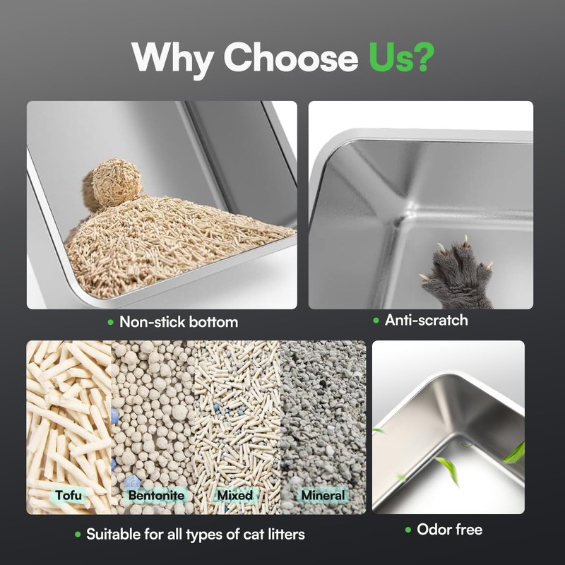 - Durable Construction: Crafted from high-quality stainless steel, this litter box is built to withstand scratches, stains, and rust, ensuring long-lasting use.