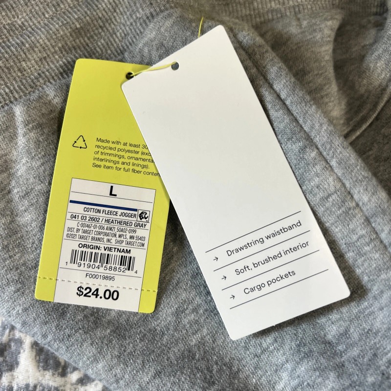 All In Motion Men’s Cotton Joggers W/cargo pockets Size Large Heather Gray