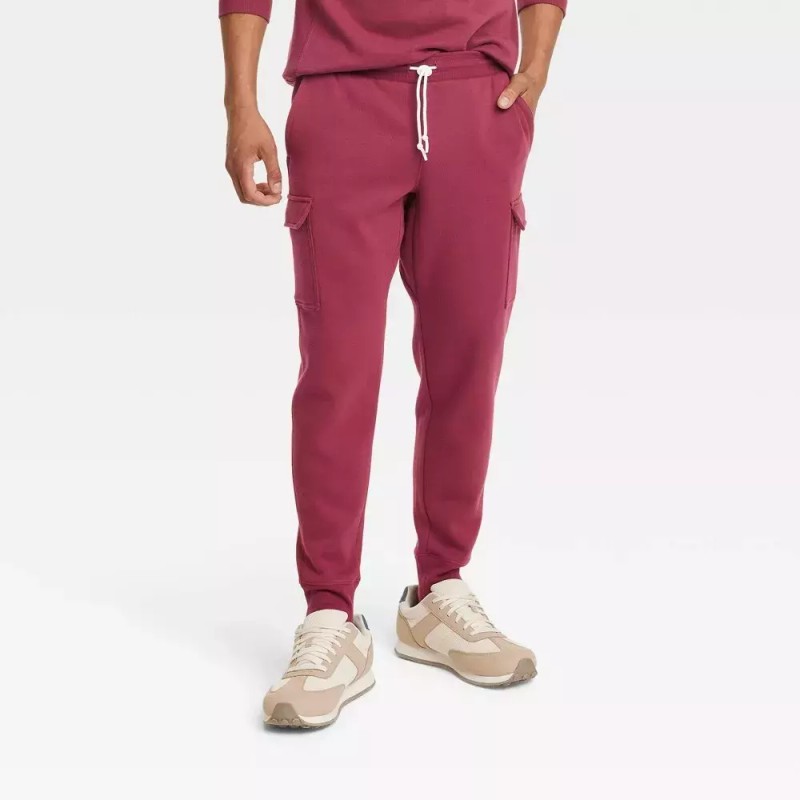 All In Motion XXL All In Motion Mens Cargo Pocket Cotton Fleece Jogger Sweatpants Red 2XL