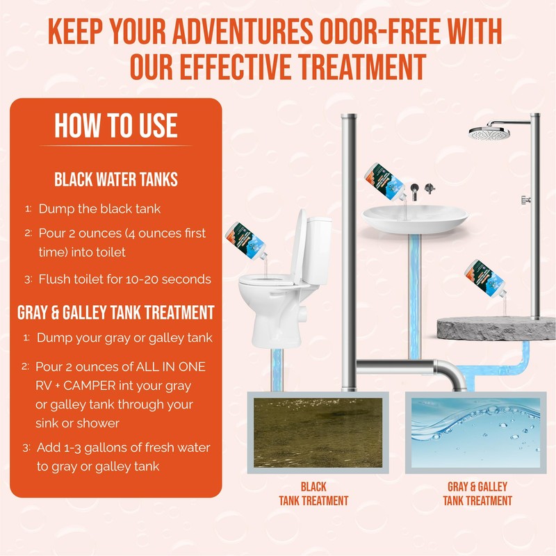 - Prevent Stinky Situations Our scientifically proven odor eliminator keeps your RV fresh and clean. It helps maintain sensor probes and prevents clogs and pyramid plugs, ensuring a hassle-free experience.