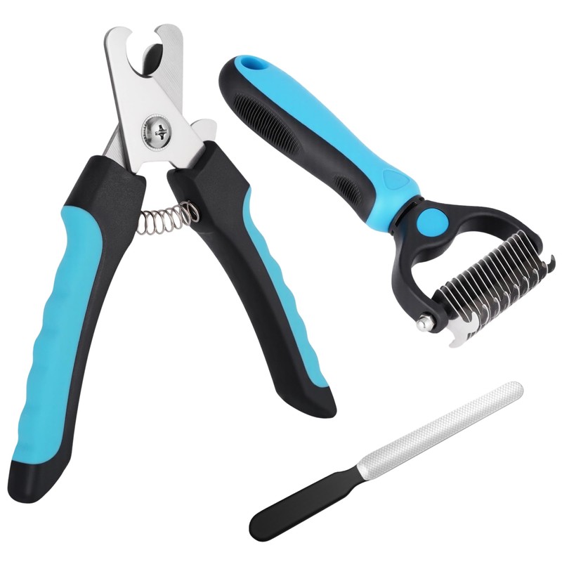 All-in-One Pet Grooming Kit: Nail Clippers with Safety Guard, Nail File & Dematting Comb, Comfortable for Pets & Owners