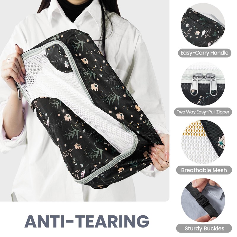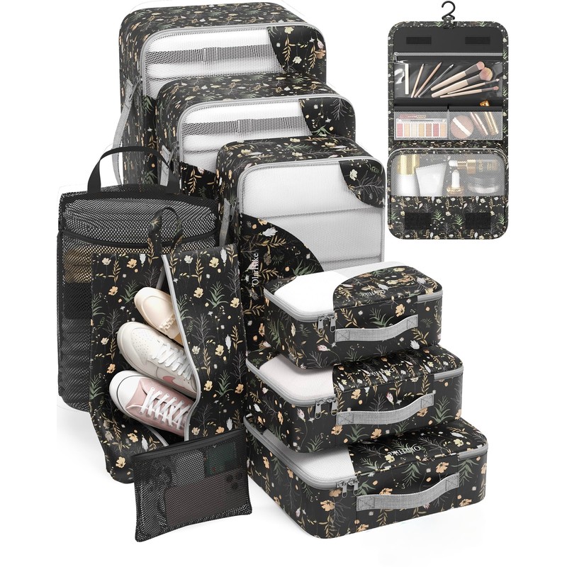 ALL INCLUDED 10 Set Durable Packing Cubes for Suitcases,OlarHike Essentials for Travel,UPGRADED Anti-Tear Stitching, NEW Improved Luggage Packing Organizers for Travel Accessories, Black Flower