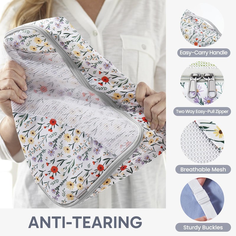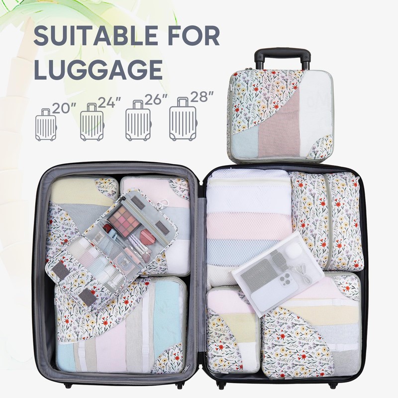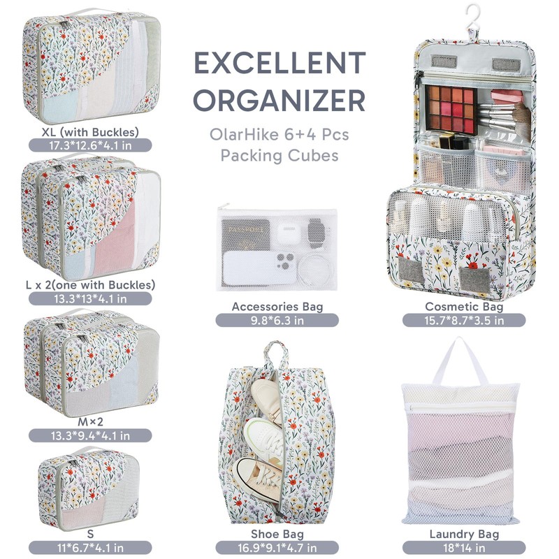 ALL INCLUDED 10 Set Durable Packing Cubes for Suitcases,OlarHike Essentials for Travel,UPGRADED Anti-Tear Stitching, NEW Improved Luggage Packing Organizers for Travel Accessories (Flower)