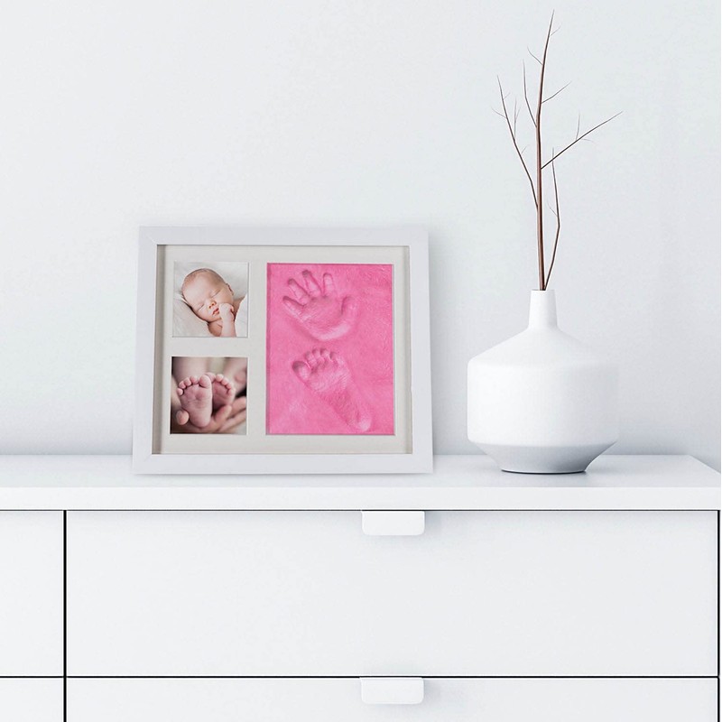 all Kids United® Baby Picture Frame Imprint Set - Plaster Print Photo Frame for Hand Print, Foot Print & Photos; Gift Set for Birth, Christening, Baby Part, etc. (Pink Plaster)