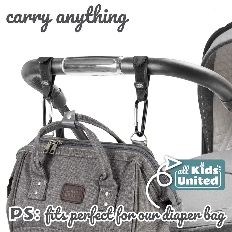 all Kids United® Pram Hook for Nappy Bag Changing Bags Changing Backpack Buggy Hook Baby Backpack with Carabiner Hook and Velcro (Set of 2)