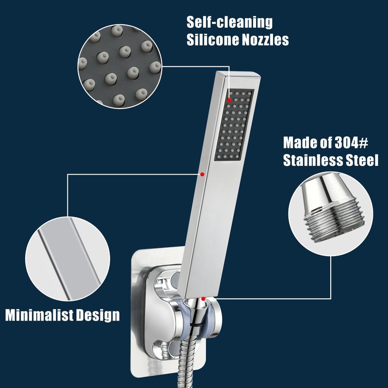 -The Soften Rubber Jet Nozzles prevent the build-up of minerals, easy for Blockage Removal by fingers. The Shower head body made from high quality 304 stainless steel. We use Stainless Steel Hose with the solid brass connection fittings that won't crack or split.