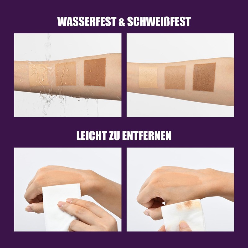 - 【Multifunktionaler Concealer】Er ist ein hervorragender Abdeckstift für das Bein-Make-up, der eine Vielzahl von Hautunreinheiten effektiv abdeckt und auch zum Abdecken von Tätowierungen und Krampfadern verwendet werden kann, um einen gleichmäßigen Hautton mit einem natürlichen Finish zu erzielen, das nicht klumpt oder verschmiert.