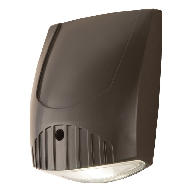 LED wall pack floodlight, equivalent up to 100W Metal Halide. 5000K color temperature. Low profile. Universal installation and tool-less features. For outdoor illumination of general areas and architectural floodlighting. Durable, bronze die-cast aluminum housing. Versatile mounting options, wall or ground. cULus Listed, Energy Star. The all-pro LED wall pack series incorporates advanced LED technology and optical design to bring you a slim- profile luminaire with uncompromising performance. Multiple control options are available, including integral photo control for Dusk-to-Dawn operation and flood for switch control. This fixture provides area coverage equivalence up to 100W metal halide while achieving substantial energy and maintenance SAVINGS. Perfect for illuminating residential, light commercial, apartments and hotel building.